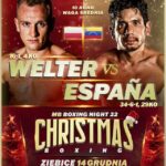 W walce wieczoru gali MB BOXING NIGHT 22 zobaczymy czołowego polskiego zawodnika kategorii średniej Karola Weltera (16 -1, 4KO). Welter po raz ostatni boksował w marcu w swoim rodzinnym mieście i pokonał pewnie na punkty Anglika Andrew Robinsona. Teraz legniczanina czeka na duży zagraniczny pojedynek wiosną 2025 roku i walki w Ziębicach przegrać nie może. A przeciwnikiem Karola będzie urodzony w Caracas w Wenezueli Ernesto Espana (34-6-11, 29KO). Espana napsuł w swojej karierze sporo krwi wielu zawodnikom ze światowej czołówki. Boksował choćby z Kanadyjczykiem Yvesem Ulysse Juniorem (22-3) czy Ukraińcem Tarasem Szelestiukiem (19-0). Weltera czeka zatem szalenie wymagający test.