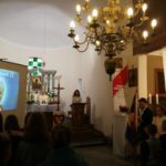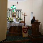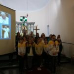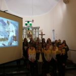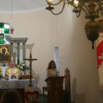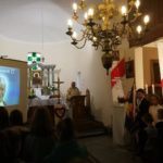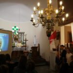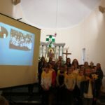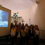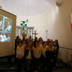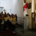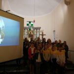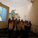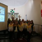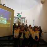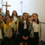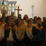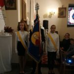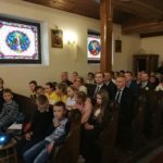 Druga część uroczystości miała miejsce w naszej kamienieckiej kaplicy pod wezwaniem Matki Boskiej Częstochowskiej. O godzinie 17:00 celebrowana była uroczysta Msza św. w intencji Ojca Świętego, której przewodniczył ks. proboszcz Wojciech Jasiński. We mszy świętej uczestniczył poczt sztandarowy naszej szkoły. Nie mogło zabraknąć znamienitych gości, wśród których byli wójt Marcin Czerniec i przewodniczący Rady Gminy Dominik Krekora. Dostojności uroczystości nadał śpiew lokalnego zespołu Starczowianki.
