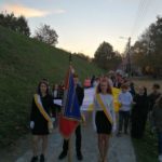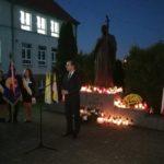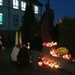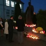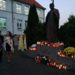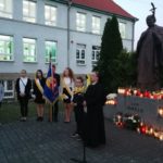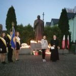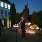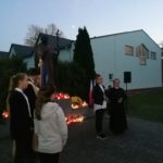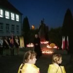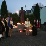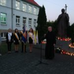 Po modlitwie delegacja władz samorządowych, szkoły oraz mieszkańcy Kamieńca Ząbkowickiego uroczyście udali się pod Pomnik Patrona naszej szkoły, Papieża Jana Pawła II, gdzie złożyli kwiaty i zapalali znicze. Uczniowie i pracownicy naszej szkoły odmówili Różaniec Święty. Następnie  głos zabrał wójt Gminy Marcin Czerniec.
