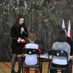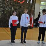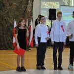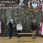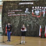 Zaproszeni goście, nauczyciele i uczniowie wzięli udział w uroczystym apelu z okazji Narodowego Święta Niepodległości, który został przygotowany przez Panie Zuzannę Rutę, Bernadetę Tajkę i Aurelię Plejewską. Oryginalny scenariusz skupiony był na tym, co ważne dla naszego narodu: tradycjach, barwach narodowych, historii, języku ojczystym, patriotyzmie, a co za tym idzie – na poszanowaniu Ojczyzny.