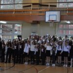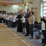 Spotkaliśmy się w hali sportowej w odświętnych nastrojach, w przeddzień Narodowego Święta Niepodległości, podkreślając ten wyjątkowy apel kotylionami w barwach narodowych.