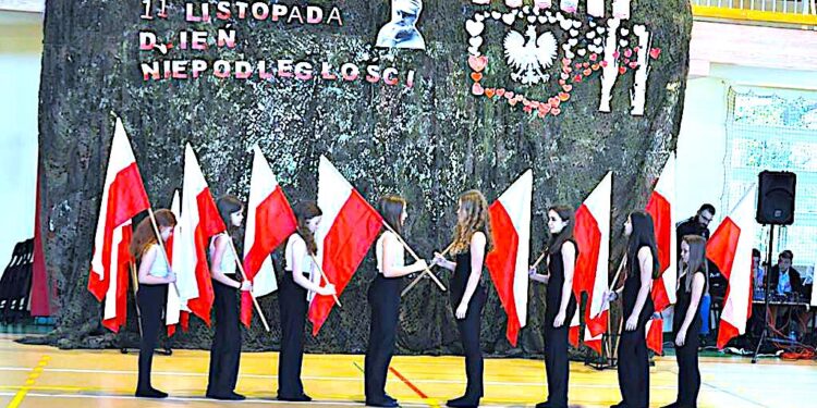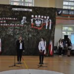 W wzruszających scenach zobaczyliśmy kibiców w barwach narodowych, rodzinę przy stole, usłyszeliśmy piosenki mówiące o Ojczyźnie i wolności. Pięknymi słowami podsumował to uczeń grający postać Księdza Kardynała Stefana Wyszyńskiego, który w dialogu z Janem Pawłem II powiedział: „Naród bez przeszłości, bez tradycji, bez kultury nie jest szanowany przez nikogo”. Nowoczesnym i bardzo dynamicznym akcentem okazał się taniec z flagami, w wykonaniu uczennic. Nie zabrakło też pięknego tańca do melodii z filmu pt. „Polskie drogi”, solowych występów uczniów śpiewających piosenki o pięknie naszej Ojczyzny.