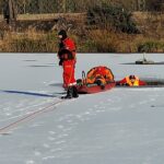 Na szczęście były to tylko ćwiczenia sprawnościowe Jednostka Ratowniczo-Gaśnicza Państwowej Straży Pożarnej ze Świebodzic. Testowanie procedur i skuteczności działania miało miejsce wczoraj przed południem na rzeczywiście zamarzniętym stawie Warszawianka. Szkolenie polegała na symulacji wyłowienia spod warstwy lodu osoby tonącej, w rolę której wcielił się jeden z druhów świebodzickiej straży pożarnej.