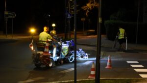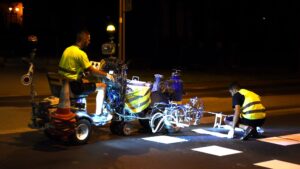 Minionej nocy prace były wykonywane w obrębie „Ronda Węgierskiego” i na ul. Tadeusza Kościuszki. Obecnie odnawiane są przejścia dla pieszych i linie „stopu”. Ekipa malująca pracuje nocą, dzięki czemu minimalizowane są zatory pojazdów, jakich można byłoby się spodziewać w porze dziennej. Malowanie oznakowania poziomego odbywa się w ramach umowy zawartej w jeszcze w 2021 r i rocznie pochłania ok. 105 tys. zł z budżetu gminy miejskiej.