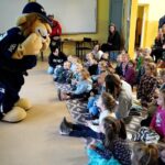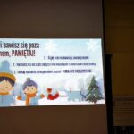 Mundurowi z Posterunku w Słowinie wraz z obecnym na spotkaniu ratownikiem GOPR Krzysztofem Patkiem rozmawiali z najmłodszymi o tym, gdzie nie należy jeździć na sankach oraz jak zachowywać się na stokach czy też lodowiskach. Uczestnicy spotkania mogli zobaczyć na zaprezentowanym filmie wykorzystanie psów ratowników – określanych jako ratownicy na czterech łapach. Ratownik przestrzegał także przed wchodzeniem na zmarznięte jeziora i zbiorniki wodne. Informował o tym co koniecznie należy zabrać ze sobą wybierając się w góry, a w razie wystąpienia wypadku na stoku, należy zadzwonić na numer alarmowy 112 lub kontaktować się z ratownikami GOPR pod nr tel. 985 / 601 100 300 (numer ratunkowy w górach). W sytuacji zagrożenia życia lub zdrowia pomocna może okazać się również aplikacja Ratunek, którą należy zainstalować w telefonie. Ratunek połączy Cię z ratownikami górskimi i wyśle im Twoją lokalizację (więcej informacji na www.ratunek.eu).