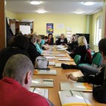 Spotkanie prowadzą przedstawiciele Fundacji Pomocy Wzajemnej Barka z Poznania z psycholog Barbarą Sadowską na czele. Na wstępie spotkania uczestnicy zgromadzeni w Klubie Pracy dowiedzieli się o historii spółdzielni socjalnych w Polsce, dla których warunki prawne zaistniały dopiero w 2006 r. Od tego czasu założonych zostało w całym kraju ponad 700 spółdzielni, których zasadą naczelną jest kreowanie miejsc pracy dla jej założycieli i członków w oparciu o solidarny udział w wypracowywaniu zysku. Jak podkreśliła prelegentka, spółdzielczość socjalna, której ideę poznała we Włoszech w połowie lat 90, charakteryzuje się skromnością ponoszonych kosztów, gdyż celem nadrzędnym jest wyjście osób długotrwale pozostających bez pracy ze stanu kryzysu osobistego i rodzinnego, jaki wynika nie tylko z braku środków do życia, ale także z pozbawienia człowieka sensu egzystencji.