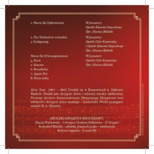 Jednak prawdziwą niespodzianką dla melomanów będzie możliwość nabycia pierwszej płyty z utworami „naszego” kompozytora, nagranej w Opolu przez Opolski Chór Kameralny pod dyrekcją Mariana Bilińskiego. Płyta w zamierzeniu organizatorów będzie równocześnie „cegiełką na remont organów” w kościele sióstr klarysek, więc cel podwójnie szczytny.