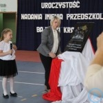 Pierwszym punktem ceremonii był „Poloneza” zatańczony przez wychowanków przedszkola. Następnie dyrektor Beata Lis, po oedebraniu raportu od nauczycielki przedszkola Dagmary Komańskiej, zgłosiła na ręce wójta Jana Bajtka gotowość społeczności dzieci i rodziców do aktu nadania imienia. Po wprowadzeniu sztandaru Zespołu Szkól Samorządowych, do którego należy przedszkole, odśpiewany został hymn Rzeczypospolitej Polskiej. Wójt stwierdził, iż zostały spełnione wszystkie procedury prawne, aby przedszkole mogło mieć nadane imię, po czym przewodniczący Rady Gminy Władysław Gluza odczytał uchwałę w tej sprawie. Pani Dyrektor zapewniła, że >> nasi wychowankowie, w oparciu o przesłanki płynące z bajek, będą kroczyli drogą mądrości i sukcesu, będą pielęgnowali w sobie cechy dobroci, prawdy, wrażliwości i przyjaźni, dzięki czemu w przyszłości staną się mądrymi, dobrymi i wrażliwymi ludźmi. << Odbyło się ślubowanie przedszkolaków reprezentujących wszystkie grupy oraz odsłonięcie tablicy pamiątkowej przez Agnieszkę Stawowy – przewodniczącą Rady Rodziców wraz z dwojgiem przedszkolaków. Poświęcenia tablicy dokonał ksiądz dziekan Ryszard Słowiak. Głos zabrał następnie dyrektor Wrocławskiego Teatru Lalek Janusz Jasiński. Jak się bowiem dowiedzieliśmy po uroczystości, Przedszkole „Bajkowa Kraina” w Ciepłowodach jest pierwszą na Dolnym Śląsku placówką objętą honorowym patronatem tej instytucji kultury. Współpraca podjęta z inicjatywy miejscowego grona pedagogicznego jest szczególną formułą wychowania i edukacji dzieci do odbioru kultury.
