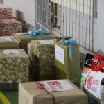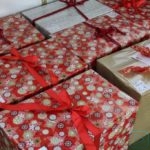 ponad 70 paczek z darami (ubrania, obuwie, zabawki, produkty spożywcze, chemia gospodarcza, kosmetyki),