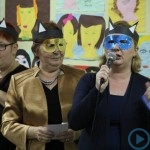 Wszyscy uczestnicy bardzo udanej imprezy wcielali się w role obu stworzeń, co było okazją do wielu zabawnych sytuacji. Najważniejsze były oczywiście doskonałe humory dzieci i młodzieży oraz ich opiekunów. Jakn nam powiedziała Irena Szewczyk – prezes „Integracji” szczególnie zaangażowane w animowanie wieczoru były wolontariuszki z Ośrodka Szkolenia i Wychowania z Ząbkowic Śląskich, którymi kieruje dyrektor tej placówki Krystyna Zerbok. Główną jednak pomysłodawczynią i wodzirejką andrzejkowej zabawy była terapeutka Joanna Frej. Jak zawsze nie zawiedli rodzice, którzy przygotowali obfite menu i również sami włączali się do pląsów i gier. Oprawę muzyczną i świetlną zapewnił Paweł Mazur. Były też oczywiście tradycyjne wróżby, jako że każdy uczestnik andrzejkowego wieczoru losował pasek z treścią sympatycznej „wiadomości z przyszłości”. Wszyscy naprawdę świetnie się bawili i z pewnością wieczór będzie miłym wspomnieniem na długo dla jego uczestników.