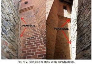 2. Dla zatrzymania tego procesu mają być wykonane stalowe ściągi spajające przybudówkę z wieżą.