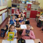 Dzieci zachęcane przez wychowawczynię Wiolettę Ciborowską chętnie czytają książki, odwiedzają szkolną bibliotekę i wymieniają się wrażeniami z lektury.  W ostatnim czasie świętowaliśmy Dzień Książki i Praw Autorskich – 23 kwietnia oraz Dzień Bibliotekarza – 8 maja rozpoczynający Tydzień Bibliotek.