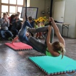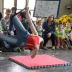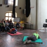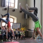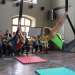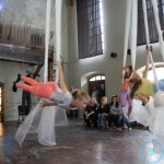 Zapowiadany przez nasz portal pokaz „Air Play Ground” – podsumowanie kilkumiesięcznej pracy z dziećmi i młodzieżą – odbył się w Srebrnogórskiej Przestrzeni Artystycznej w ubiegłym tygodniu. Popisy obserwowali przede wszystkim rodzice podopiecznych Katarzyny Donner, która od kilkunastu miesięcy realizuje w Srebrnej Górze bardzo interesujące i nowatorskie projekty artystyczne, o których pisaliśmy w naszym portalu. Tym razem podziwiać można było niezwykle odważne ewolucje wykonywane przez dziewczęta balansujące na szarfach. Zanim jednak publiczność mogła wejść do „Aniołka”, każdy musiał się przesmyknąć przez zaaranżowaną z kolorywych sznurków pajęczynę – jakby przejść do innego świata. Potem widzieliśmy świat dzieci zafascynowanych obrazem telewizyjnym, które dają się jednak namówić na żywy kontakt ze swoimi rówieśnikami. To otwiera je na urodę życia i pozwala marzyć, a poprzez marzenia planować przyszłość. Są też sytuacje, które u młodych ludzi wywołują skłonność do zamykania się na innych, do naturalnego dla wieku dorastania buntu, aby i tą drogą trafić do tego rzeczywiście ważne i cenne w życiu. Ten opis to wyłącznie subiektywne wrażenia piszącego te słowa, bo przecież twórcom przedstawienia najbardziej zależy na tym, aby każdy widz interpretował ich dzieło „po swojemu”. Niech pomogą w tym zdjęcia, które publikujemy poniżej.