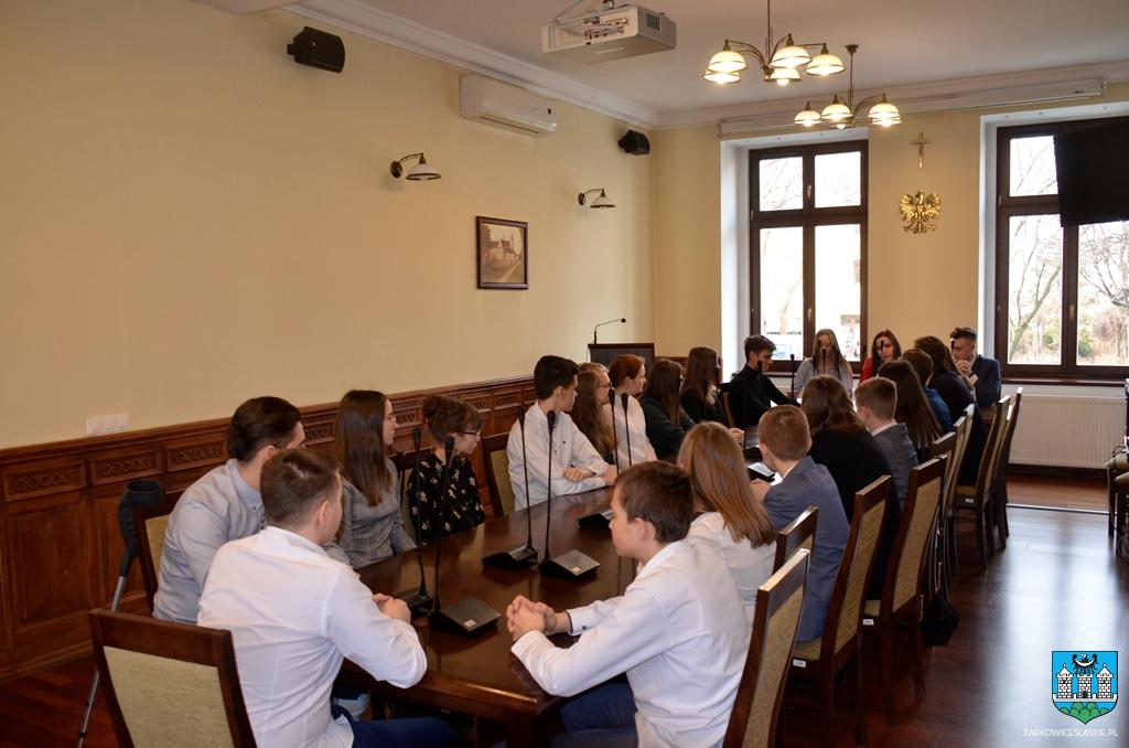 Wizyta zaczęła się od spotkania w Ratuszu Miejskim. Młodzież i ich opiekunów przywitał burmistrz Ziębic Mariusz Szpilarewicz oraz dyrektor Gminnego Centrum Edukacji i Sportu w Ziębicach Andrzej Regner.