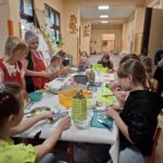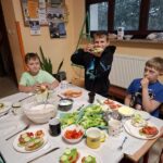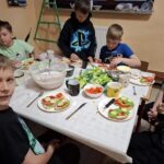 Dzieci dowiadują się czym jest zbilansowana dieta i jaka jest jej rola dla rozwoju młodego człowieka. Uczą się, jak prawidłowo wybrać produkty spożywcze na sklepowej półce. Dokładne czytanie etykiet daje pewność trafnego wyboru asortymentu. Umiejętności praktyczne szlifują podczas zajęć kulinarnych organizowanych w ramach projektu. W maju br. uczniowie z klasy 2 i 3 mieli możliwość sprawdzić się w roli kucharzy. Zorganizowana w szkole ,,nocowanka’’ była okazją, aby udoskonalić umiejętności praktyczne w posługiwaniu się akcesoriami kuchennymi. Uczniowie samodzielnie przygotowali zdrową kolację oraz śniadanie. Zadbali również o bezpieczeństwo i higienę w miejscu pracy. Wykazali się dużymi kompetencjami w zakresie samoobsługi oraz kreatywnością.