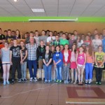 Władysław Kozakiwicz spotkał się z uczniami Gimnazjum im. Polskich Olimpijczyków, w trakcie którego młodzież miała okazję na zwykłą rozmowę z niezwykłym człowiekiem, pamiątkowe zdjęcia no i oczywiście zdobycie autografu. Olimpijczyka powitano hymnem olimpijskim oraz słowami wypowiedzianymi przez wójta Jana Bajtka, dyrektor Zesoołu Szkół Samorządowych Beatę Lis oraz ucznia Grzegorza Stramę. Uczennice kl. III b Marta Fajkowska i Gabriela Szubert , chcąc pokazać, iż bliskie naszej szkole są idee olimpijskie, przygotowały krótką relację z uroczystości nadania imienia gimnazjum, która miała miejsce w czerwcu 2012 r. W spotkaniu brali też udział przewodniczący Rady Gminy Władysław Gluza oraz sekretarz Gminy Grażyna Orczyk.
