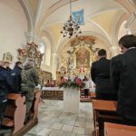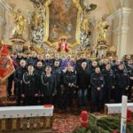 Zewnętrznym wyrazem tej jedności była obecność w mundurach druhów strażaków z Czerńczyc (z pocztem sztandarowym) i z Krzelkowa. Dołączył Władek w uniformie wojskowym. Oprawę muzyczną (gitara i śpiew) przygotował Leszek, naczelnik O.S.P Czerńczyce. Pokornym gestem wsparcia ze strony naszej wspólnoty i przybyłych gości stało się też przekazanie, zgodnie z wcześniejszą zapowiedzią, wszystkich tac niedzielnych na pomoc rodzinom policjantów, którzy odeszli na wieczną służbę. Uciułaliśmy spory grosz, jak na nasze możliwości.