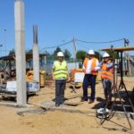Burmistrz Marcin Orzeszek wraz ze swoim zastępcą Piotrem Miernikiem i inspektor Anetą Potok odwiedzili w poniedziałek plac budowy krytego basenu – największej inwestycji w najnowszej historii gminy.