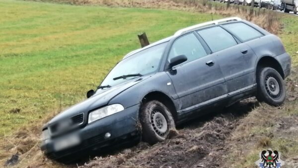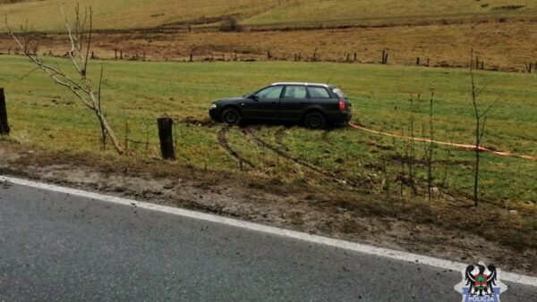 - Najpierw – około godz. 10. – 31-letni kierujący samochodem osobowym w wyniku niedostosowania prędkości do panujących warunków na drodze zjechał pojazdem z jezdni i wylądował na pobliskich polach.