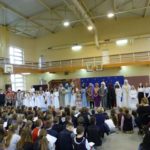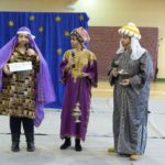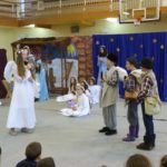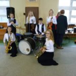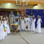 Trudno zresztą się temu dziwić, ponieważ wszyscy słyszeli rozbrzmiewające po korytarzach dźwięki kolęd, w wersji instrumentalnej i śpiewanej, które Pani Bogumiła Pietrusewicz przygotowywała na występ jasełkowy. I wreszcie mogliśmy obejrzeć efekt tej pracy. Wraz z Panią Piertusewicz Jasełka przygotowały Panie Elżbieta Cwek i Elżbieta Dąbrowska. Zauroczeni oglądaliśmy historię narodzenia Jezusa, z zachwytem słuchaliśmy kolęd śpiewanych przez solistów, do których ochoczo dołączaliśmy, ale największe wrażenie zrobiła, jak określiła to Pani Dyrektor Bożena Kołodziej, szkolna orkiestra. Pani Pietrusewicz zaprosiła do wspólnego zagrania kolęd uczniów, którzy rozwijają swoje talenty muzyczne w szkołach muzycznych, orkiestrze górniczej lub samodzielnie.