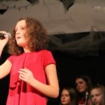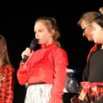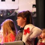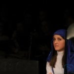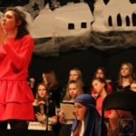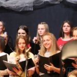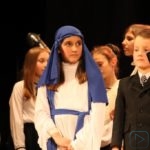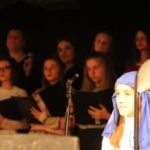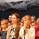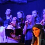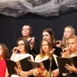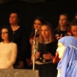 Kolejne utwory śpiewane były przez cały zespół lub w rozmaitych liczebnie i głosowo konfiguracjach, a także w duetach i solo. Nikomu z młodych artystów nie można odmówić talentu, niewątpliwie kształcenie głosu eksponuje te naturalne umiejętności jeszcze bardziej, a dobór repertuaru i naturalność zachowań scenicznych dostarczały widzom naprawdę pięknych przeżyć i – zapewne – skłaniały do okołoświątecznych refleksji. Całe misterium oparte było o motyw wątpliwości nastoletniej dziewczyny, która obserwując życie swojej rodziny i środowiska, w jakim na co dzień przebywa, zastanawia się nad sensem świętowania Bożego Narodzenia. Ma realne powody, by w hipokryzji dorosłych czy lekkomyślności rówieśników znajdować nie tylko oznaki duchowej zapaści, ale też braku wrażliwości na innych ludzi. Pod pozorem tradycji świątecznych zbyt często bowiem skrywana jest obojętność, a nawet egoizm. Na szczęście, dziewczyna stawianymi przez siebie pytaniami, przywraca sobie i swoim bliskim nadzieję, że dobro uosobione przez Jezusa Chrystusa przychodzącego na świat jest silniejsze i warto mu oddać całe serce i wszelką myśl. To „libretto” misterium „Raduj się Świecie”, ale dopiero wysłuchanie i obejrzenie całego przedstawienia daje obraz tych poszukiwań. Być może jesteśmy wśród tych, którzy takie pytania stawiają i pozytywnej odpowiedzi na nie szukają.