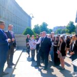 Na schodach Dolnośląskiego Urzędu Wojewódzkiego przywitali nas wicemarszałek województwa dolnośląskiego Grzegorz Macko oraz inicjator wyprawy, czyli burmistrz Kamieńca Ząbkowickiego. Następnie mieliśmy okazję spotkać się z wojewodą dolnośląskim Jarosławem Obremskim, porozmawiać o jego pracy oraz obejrzeć gabinet, w którym na co dzień podejmowane są różne ważne decyzje. Najciekawsze spotkania odbyły się jednak w sali Sejmiku Wojewódzkiego, gdzie wysłuchaliśmy wykładów z zakresu struktury i roli samorządu terytorialnego na poziomie gminy, powiatu, województwa oraz różnic pomiędzy kompetencjami urzędów wojewódzkich i urzędów marszałkowskich. Prelekcje wygłosili przewodniczący sejmiku Andrzej Jaroch, burmistrz Kamieńca Ząbkowickiego Marcin Czerniec oraz Łukasz Lach – pracownik Urzędu Marszałkowskiego Województwa Dolnośląskiego.