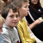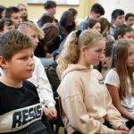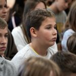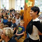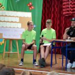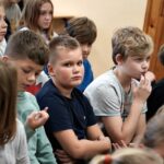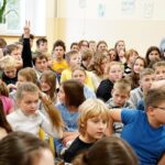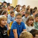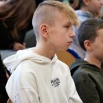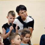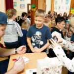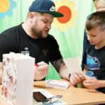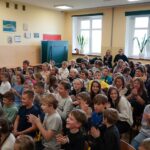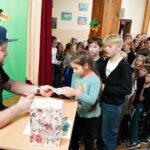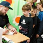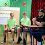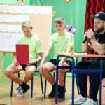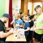 Uczniowie dopytywali też o wspomnienia z igrzysk. Czym interesuje mistrz świata w rzucie młotem poza sportem? Trudno odpowiedzieć na to pytanie, bo każdy medal smakuje zupełnie inaczej. Każdy sukces wywalczony jest trudniej bądź łatwiej. Mam nadzieję, że jeszcze kilka tych medali zdobędę. Pamiętajcie, że w życiu najważniejsze jest zdrowie i miłość. Jak będzie dorastać to będziecie lepiej rozumieć te słowa. Jest wielu bardzo bogatych ludzi na świecie, którzy są sami lub nie mają zdrowia – na co uczniowie odpowiedzieli gromkimi brawami, dziękując za dotychczasowe osiągnięcia Pawła Fajdka na mistrzowskich zawodach. Natomiast największym pochłaniaczem czasu poza sportem są gry komputerowe, niestety. Wtedy odpoczywam i się relaksuje, bo na co dzień dużo trenuję. Nie mam pracy siedzącej więc dużej krzywdy mi to nie zrobi – mówił z uśmiechem wielokrotny mistrz świata. Po rozmowie nadszedł czas na pamiątkowe autografy i wspólne zdjęcia.