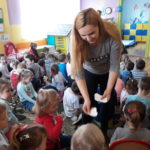 Przedstawicielki Towarzystwa Opieki nad Zwierzętami odebrali również zebrane przez placówkę plastikowe korki oraz karmę dla psów i kotów. Na koniec każdy przedszkolak otrzymał naklejkę „Przyjaciela zwierząt”. Bardzo dziękujemy za ciekawe i pouczające spotkanie.