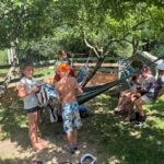 Co najbardziej utkwiło w pamięci młodych uczestników? Tajniki związane z pracą na gospodarstwie. Przygotowywanie jedzenia dla zwierząt i samo karmienie. Prawdziwą furorę wywołało też… wielkie pranie. Mając w rękach dawne przyrządy i instrukcje gospodarza okazało się, że nie jest to takie proste. Po trudach pracy wszyscy posilili się kiełbaską przy wspólnym ognisku.