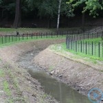 Całość parku oglądana oczyma spacerowiczów – jak wynika z naszych rozmów z przechodniami – robi dobre wrażenie. Jako bezwzględny mankament wskazywana jest przede wszystkim kładka nad potokiem Zatoka, której zbyt wypukły profil praktycznie uniemożliwia przejście po niej osobom mniej sprawnym fizycznie. Sam potok, został wprawdzie odgarnięty z zarośli i śmieci, ale daleko mu do właściwego stanu. Od kilku dni ponownie zamknięty jest plac zabaw dla dzieci, który opisywaliśmy w naszej poprzedniej relacji, bo jak się okazało konieczne jest usunięcie suchych konarów wiszących z drzew nad urządzeniami zabawowymi. Sam plac zabaw wymaga też odrębnego sprawdzenia pod kątem bezpieczeństwa dzieci. Świeciły ozdobne latarnie w części parku wzdłuż murów obronnych, ale już nie działały lampy pomiędzy ul. Ziębicką a „starym” cmentarzem i trakcją kolejową. W parku stoi 199 ławek, ale niektóre wymagać będą ponownego ustawienia i przydałoby się „zaślepienie” wystających śrub mocujące siedziska. Jest 100 koszy na śmieci, ale już widać, że od użytkowników parku wymagać trzeba elementarnej kultury zachowań, bo pojemniki te są zaplanowane pod drobne odpadki, a nie typowo domowe śmieci (nie wspominając o pozostałościach libacji). Dyskusyjna jest kwestia dopuszczalności prowadzania psów przez park, choćby z tej racji, iż już widać „pozostałości” po bezmyślności właścicieli czworonogów. Nie lepiej zresztą wyglądają efekty braku wyobraźni w fontannie u góry parku, zamienionej w rynsztok. Poza kwestią jej posprzątania (co należy do służb miejskich) nadal nie wiadomo kto i kiedy wybuduje nową.