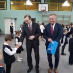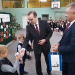 Miłą niespodzianką dla pierwszoklasistów były upominki – pluszowe misie od wójta, które Pana Marcin Czerniec w imieniu Rady Gminy i własnym wręczał osobiście oraz słodycze od rodziców. O młodszych kolegach i koleżankach pamiętali również uczniowie klasy drugiej, od których pierwszoklasiści także otrzymali prezenty. Na zakończenie uroczystości dzieci zaprezentowały krótki program artystyczny, który bardzo wszystkim się podobał. Uwieńczeniem pasowania był poczęstunek przygotowany dla uczniów klasy pierwszej przez ich rodziców.
