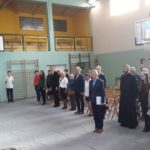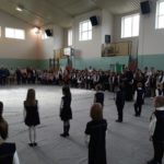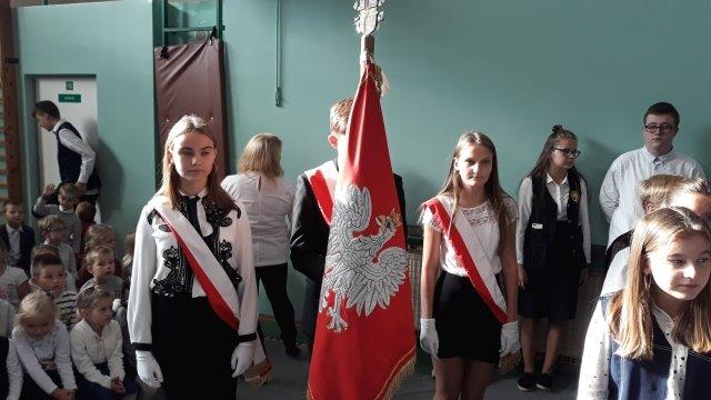 Najpierw dyrektor szkoły Pan Arkadiusz Albrecht przywitał zaproszonych gości oraz uczniów, przedszkolaków, rodziców i pracowników szkoły. Następnie pierwszoklasiści uroczyście ślubowali być dobrymi Polakami, dbać o dobre imię swojej klasy i szkoły, uczyć się w szkole jak kochać Ojczyznę, jak dla niej pracować, kiedy urosną. Przyrzekali być dobrym kolegą, dobrą koleżanką oraz swym zachowaniem i nauką sprawiać radość rodzicom i nauczycielom. Po ślubowaniu zostali pasowani na uczniów przez dyrektora szkoły Pana Arkadiusza Albrechta. Poświęcenia tarcz dokonał ksiądz proboszcz Wojciech Drab.