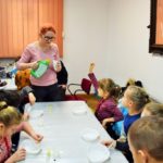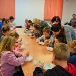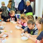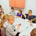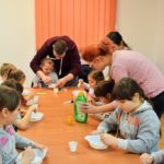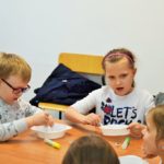 Tematyką czwartkowych warsztatów było tworzenie piankoliny, czyli masy plastycznej z płynu do prania, kleju i kuleczek styropianowych. Dzieci podczas zajęć rozwijały się poprzez integrację sensoryczną, czyli poznawanie świata wielozmysłowo. Z gotowej masy dzieci stworzyły rozmaite babki i budowle. Możliwość mieszania różnych produktów dostarczyła dzieciom wiele emocji i radości.