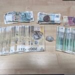 Funkcjonariusze, po tym jak otrzymali sygnał o próbie oszustwa przy zakupach przez internet od mieszkańca Kielc, wytypowali miejsce popełnienia czynu zabronionego. Kiedy przyjechali do jednego z marketów na Piaskowej Górze, podejrzany stał wciąż przy bankomacie trzymając telefon komórkowy w ręce i czekając na dyspozycję wypłaty gotówki. Ta jednak w tym momencie nie nastąpiła ze względu na zatrzymanie podejrzanego. Mundurowi z „jedynki”, podczas przeszukania zaparkowanego nieopodal samochodu użytkowanego przez sprawcę, znaleźli tam łącznie blisko 13 tysięcy złotych oraz 1,2 tys. koron czeskich, dwa telefony komórkowe oraz zawiniątko foliowe, w którym było blisko pięć gramów metamfetaminy. Pojazd również został zabezpieczony do celów procesowych.
