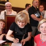 Wszyscy uczestnicy spotkania autorskiego zostali obdarowani egzemplarzami książki dr Beaty Blicharskiej i po części oficjalnej ustawiła się bardzo długa kolejka po autograf. Gratulacje pani doktor i swojej koleżance, nauczycielce lub znajomej składało wiele osób. Do treści książki będziemy wracać w naszym portalu, a póki co wyrażamy najwyższy szacunek dla Autorki za ogrom pracy i wspaniałe dzieło, które przybliża najnowsze dzieje naszej małej ojczyzny i powinno znaleźć się w książkowym kanonie każdego lokalnego patrioty.