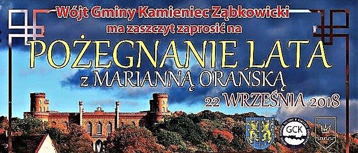 Już po raz piąty ostatnie godziny lata spędzimy razem w Kamieńcu Ząbkowickim. Zapraszamy Pożegnanie Lata z Marianną Orańską. Od samego rana do późnych godzin nocnych czeka wszystkich mieszkańców i gości mnóstwo atrakcyjnych i różnych propozycji.