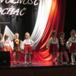 Główne uroczystości gminne odbyły się niedzielę 11 listopada. Uczniowie,  nauczyciele, pracownicy naszej szkoły jak co roku wzięli udział we Mszy Świętej za ojczyznę. Następnie złożyli kwiaty pod odsłoniętym w tym dniu obeliskiem upamiętniającym stulecie odzyskania niepodległości przez nasz kraj. Poczet sztandarowy szkoły w uroczystym pochodzie mieszkańców gminy przemaszerował przed budynek GOK-u. Tutaj wraz z rodzicami dzieci mogły wziąć udział w pikniku patriotycznym. O godzinie 15:00 sala GOK wypełniła się po brzegi, aby widzowie mogli tradycyjnie obejrzeć widowisko patriotyczne przygotowane przez uczniów naszej szkoły. W tym roku najpierw jednak przedstawiły się zuchy ze swoją druhną Marzeną Prygoń, prezentując przygotowaną przez siebie piosenkę. Gromkimi brawami zostały następnie nagrodzone dzieci przedszkolne, które brawurowo deklamowały wiersze i zatańczyły trojaka. Panie wychowawczynie Barbara Sulima oraz Agnieszka Zawadzka na pewno były z nich bardzo dumne.