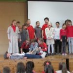 Program artystyczny pt. „Jeśli wolność czuć i kochać umiesz” przygotowali gimnazjaliści z młodszymi koleżankami i kolegami z klas IV-VIII wraz ze swoimi nauczycielami- polonistką p. L. Krzewską, p. M. Żygadło- nauczycielem muzyki i p. I Fajkowską – nauczycielką wf-u. Sugestywną scenografię zaprojektowała p. J. Strama – nauczycielka plastyki. Nieocenioną pomocą jako operator dźwięku służył p. W. Szuwarowski. Uczniowie poświęcili swoje przedstawienie w tym ważnym w naszej historii roku rówieśnikom, którym przyszło zmagać się z zaborcami, okupantem, często składając za wolność ojczyzny ofiarę krwi. Podziękowali im w ten sposób za to, że dzisiaj mogą wyrażać swoją miłość do ojczyzny inaczej: szanując i okazując życzliwość innym ludziom, dbając o swoją małą ojczyznę, wspólnie bawiąc się i pracując, bo taka postawa jest wyrazem współczesnego patriotyzmu. Widzowie: władze gminy, rodzice, mieszkańcy podziękowali aktorom, tancerzom, chórowi za ich występ aplauzem na stojąco. Mogli też cieszyć się przygotowanymi przez dzieci patriotycznymi kotylionami i podziwiać wyeksponowane na sztalugach ich prace – wyniki realizacji szkolnych projektów i udziału w konkursach plastycznych, fotograficznych i literackich.