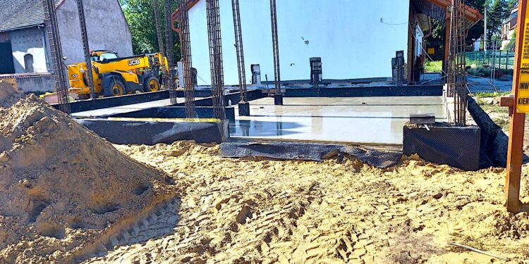 - W Grodziszczu powstanie pełnowymiarowa sala sportowa wraz z niezbędnym zapleczem sanitarno-szatniowym oraz łącznikiem z budynkiem szkoły. Wybudowana sala będzie mieć wymiary 32,54 x 19,04 m i wysokość 6, 54 m. Powierzchnia zabudowy sali gimnastycznej wraz z zapleczem i łącznikiem wyniesie 1022,63 mkw, a powierzchnia użytkowa samej sali to 912,26 mkw. Płyta sali gimnastycznej zostanie wykonana z certyfikowanej nawierzchni sportowej montowanej na wentylowanej mechanicznie przestrzeni podpodłogowej. Budynek sali ogrzewany będzie powietrzną pompą ciepła wspomaganą instalacją fotowoltaiczną, a więc będzie to ekologiczne ogrzewanie bezemisyjne, które obejmie również podgrzewanie ciepłej wody. Aktualnie prowadzone są prace ziemne związane z wznoszeniem ścian fundamentowych z bloczków betonowych. Planowany termin zakończenia budowy to październik 2023 r.