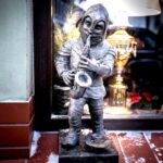 Figurki na rycerskim szlaku w Kamiennej Górze zaczęły się pojawiać w 2021 r. Rycerz – saksofonista „usiadł sobie” na parapecie popularnej kawiarni „Lotos” w centrum Kamiennej Góry.