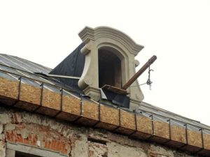 Jak widać na 4 zdjęciach powyżej, w drugiej połowie 2018 r. odtworzono konstrukcję dachu i poddasza oraz wykonano szereg prac towarzyszących). Znacząco wzmocniło to konstrukcję budowli oraz uchroni jego zachowane elementy przed negatywnym oddziaływaniem czynników atmosferycznych.