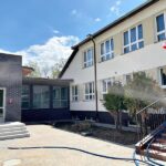 Na zewnątrz budynek sali gimnastycznej przy Szkole Podstawowej im. Jana Pawła II w Grodziszczu wygląda już imponująco.