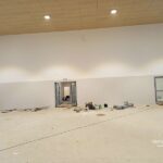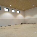 Wewnątrz do wykonania pozostał jeszcze montaż podłogi sportowej i urządzeń sanitarnych, roboty malarskie, wykonanie posadzek w pomieszczeniach szatni oraz montaż wykładzin na ścianach. Płyta sali gimnastycznej zostanie wykonana z certyfikowanej nawierzchni sportowej montowanej na wentylowanej mechanicznie przestrzeni podpodłogowej. Budynek ogrzewany będzie powietrzną pompą ciepła wspomaganą instalacją fotowoltaiczną – ekologiczne ogrzewanie bezemisyjne (również podgrzewanie ciepłej wody).