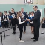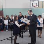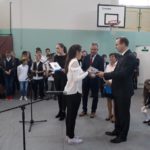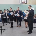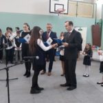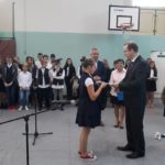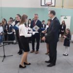 Wójt naszej gminy Pan Marcin Czerniec i przedstawiciele Rady Gminy: Pani Bogusława Tokarz i Pan Ryszard Kleniuk wręczyli stypendia podczas uroczystego apelu z okazji Pasowania Pierwszoklasistów w Szkole Podstawowej nr 2 im. Papieża Jana Pawła II.