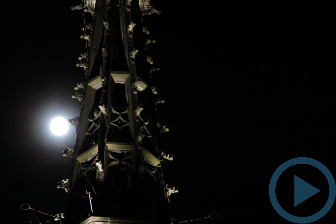Białe księżycowe światło rozświetlało minionej nocy niebo nad ząbkowickim Ratuszem.