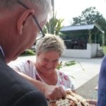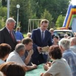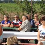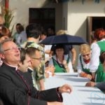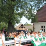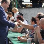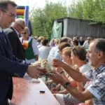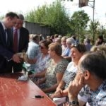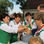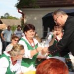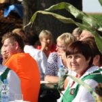 Po zakończeniu modlitwy w kościele, korowód dożynkowy przemaszerował na plac w pobliżu świetlicy wiejskiej. Tam, w obecności gości i mieszkańców dopełniono tradycji prezentacji korony żniwnej. Marcin Czerniec – wójt gminy Kamieniec Ząbkowicki, ks. dziekan Wojciech J. Dąbrowski, przewodniczący Rady Gminy Dominik Krekora oraz sołtys wsi Sosnowa radny Ryszard Bierut podzielili się poświęconym w trakcie liturgii chlebem ze wszystkimi obecnymi. Potem był już czas wspólnej dożynkowej biesiady i zabawy do późnych godzin wieczornych.