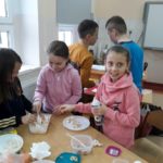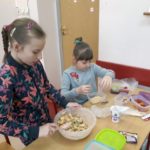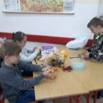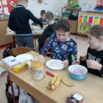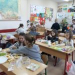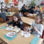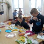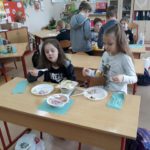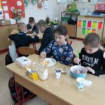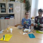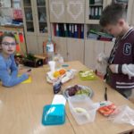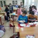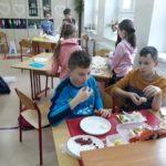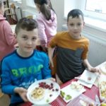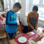 Szczególnie atrakcyjną częścią projektu okazało się przygotowanie zdrowej przekąski. Uczniowie mieli wiele ciekawych pomysłów na wykonanie tego zadania. Opracowane wcześniej i dobrze przedyskutowane przepisy, zakupione produkty, wielki zapał i dobra organizacja pracy sprawiły, że na godzinie wychowawczej w poszczególnych grupach bardzo szybko pojawiły się smakowicie wyglądające wafle ryżowe posmarowane miodem oraz ozdobione cynamonem i owocami, owocowe oraz serowo – warzywne szaszłyki, owocowe i warzywne sałatki oraz koreczki, herbatniki z jogurtowo-owocowym sosem, owocowe lemoniady. Niezapomnianą częścią tych warsztatów będzie również wspólny posiłek uczniów i wychowawcy, podczas którego przekąski zostały szybko zjedzone z wielkim smakiem. Była to również okazja do wymiany przepisów oraz wrażeń z zajęć.