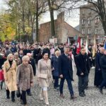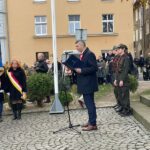 Następnie zgromadzeni uczestnicy przemaszerowali pod Pomnik Poległym za Ojczyznę. Po wystąpieniu Burmistrza Marcina Orzeszka zebrane delegacje złożyły kwiaty i wieńce.