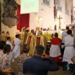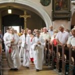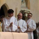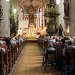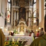 W niedzielne południe największa ząbkowicka świątynia wypełniona była wiernymi. Po procesjonalnym wejściu do kościoła Mszy św. przewodniczył ks. bp. Ignacy Dec, wraz z którym przy ołtarzu stanęli: nowy proboszcz parafii ks. Krzysztof Herbut, rektor Wyższego Seminarium Duchownego w Świdnicy ks. Tadeusz Chlipała oraz księża pallotyni z sąsiedniej parafii pw. Najświętszego Serca Pana Jezusa. Modlitewną aurę wzmacniały muzyka i śpiew wykonywana przez zespół „Genazaret”, który działa przy parafii pw. Św. Jana Nepomucena w Piskorzowie, gdzie dotąd duszpasterzem był ks. Krzysztof Herbut.