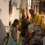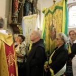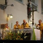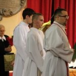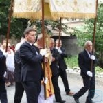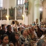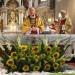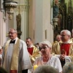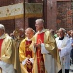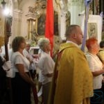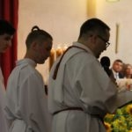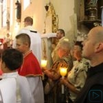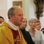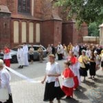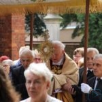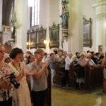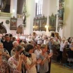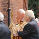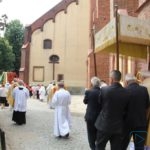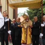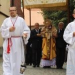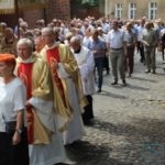 Pod koniec Mszy św. słowa powitania wobec ks. proboszcza Krzysztofa Herbuta skierowali przedstawiciele samorządu gminy i powiatu oraz delegacje rodzin, liturgicznej służby ołtarza i parafialnych ruchów świeckich. W krótkim „expose” nowy proboszcz podziękował za przyjazne gesty pod jego adresem. Wspomniał przy tym odbytą kilkanaście dni temu podróż po Kresach, gdzie wielokrotnie widział pola pełne słoneczników. „Ich kwiaty zwrócone były ku słońcu i chciałbym bardzo abyśmy także w naszej parafii wszyscy byli nastawieni na Pana Boga” – powiedział ks. proboszcz. Zacytował na koniec fragment ze Starego Testamentu: „Błogosławieństwo ojca umacnia dom synów…” i ujawnił, że na nową posługę otrzymał już błogosławieństwo swojego taty, biskupa diecezji oraz burmistrza miasta. Na 15 sierpnia br., czyli uroczystość Wniebowzięcia Najświętszej Maryi Panny zapowiedział liturgiczne zawierzenie parafii Matce Bożej i zaprosił do udziału w tym święcie i poprzedzającej go nowennie. Cała niedzielna uroczysta celebra zakończyła się procesją z Najświętszym Sakramentem wokół świątyni parafialnej i błogosławieństwem pasterskim.